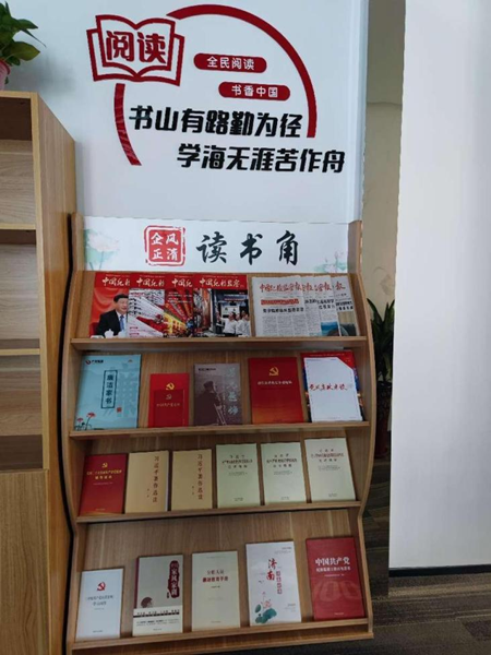 活動開展以來,產(chǎn)發(fā)企管集團各權(quán)屬企業(yè)高度重視,積極謀劃,認真部署,在黨員活動室、會議室及公共辦公區(qū)域等選擇適當(dāng)位置,因地制宜創(chuàng)建各具特色的廉潔讀書角。讀書角內(nèi)放置黨史類、黨紀法規(guī)類、反腐倡廉類及紀檢監(jiān)察類期刊等讀物,為干部職工提供了一個了解黨風(fēng)廉政建設(shè)、學(xué)習(xí)時政及黨紀法規(guī)、掌握中央八項規(guī)定精神、體驗廉潔文化、感悟廉潔力量的重要窗口。讀書角周邊張貼“書香致遠、清廉潤心”“書香育廉、閱以修身”等各類廉潔文化宣傳標語,營造了濃厚的廉潔氛圍。